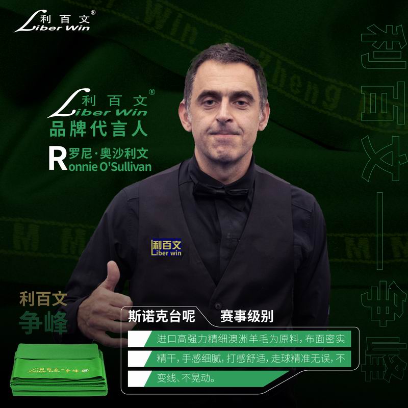 如今,利百文®凭借良好的信誉、优质的产品和稳定雄厚的生产能力,与台球行业头部企业及著名赛事经纪公司进行深度合作,全面启动品牌跃升计划,并正式签约斯诺克世界冠军罗尼·奥沙利文、丁俊晖、马克·塞尔比、卢卡·布雷塞尔为利百文全球推广大使,以及签约中式台球世界冠军郑宇伯、楚秉杰、唐春晓等多位球星为品牌宣传大使。未来,利百文®将秉持初心,以推动产业健康发展为己任、以满足客户个性需求为导向,不断深耕台呢市场,精心打造一把真正的“东方利剑”,打破国外同行的垄断,引领中式台呢走向世界,做一个台呢界的真正王者!
